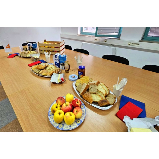 Danes zjutraj smo naše zaposlene razveselili s pristnimi sestavinami slovenskega zajtrka - kruhom, maslom, mlekom, medom in sočnimi jabolki. V prijetnem vzdušju smo se nato skupaj podružili v naši sejni sobi.